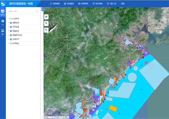 平台录入省市级海洋功能区划、生态红线、海岸线、历史遗留问题图斑、围填海图斑、养殖用海调查成果以及5cm海岸带航摄影像等数据。为全市海域海岛管理提供可靠数据支撑和信息化管理手段,有效地提高科学用海管理能力,增强海域海岛管理部门的监管水平。为打通部级、省级海域海岛动态监管打下坚实基础