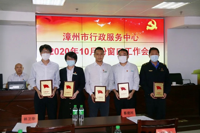 在漳州市行政服务中心2020年10月份窗口工作会议中,我院驻中心测绘窗口,以优质服务获“红旗窗口”荣誉称号,中心窗口负责人康毅清同志代表我院接受奖牌。