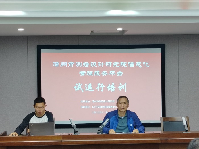 2023年11月15日,漳州市测绘设计研究院组织召开了院信息化管理服务平台(以下简称服务平台)试运行暨培训会议,会议由郑金水院长主持,院主要领导及相关科室人员参会。