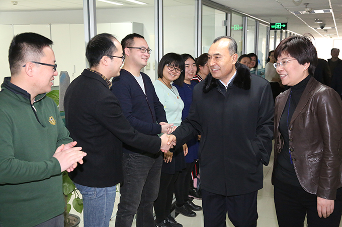2月7日,国家测绘地理信息局党组书记、局长库热西到中国地图出版集团,调研指导企业党建工作。局党组副书记、副局长王春峰参加调研。