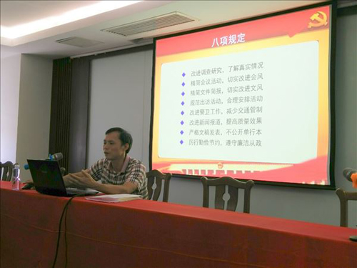 9月13日下午,测绘院支部开展“两学一做”学习教育专题党课学习会,支部郑金水书记做了“讲规矩 守纪律 做表率 做党的好干部”的专题辅导党课,全体党员参加了会议。