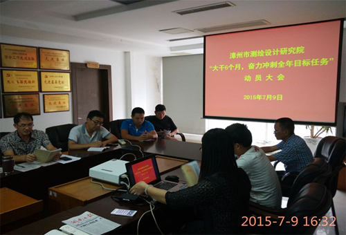 市测绘设计研究院积极贯彻市委上半年经济形势分析会暨“大干6个月,奋力冲刺全年目标任务”动员大会精神。7月2日,在院生产例会上组织学习闽南日报会议报道材料,要求各部门务必做到“优质服务、提速提效、确保项目尽快推进”,要求全院职工立即行动起来贯彻落实会议精神,抓紧项目进度,主动加班加点,强化测绘保障。7月9日召开全院动员大会,再次学习“大干6个月,奋力冲刺全年目标任务”会议精神,传达规划局动员大会的统一部署和各项要求,组织集体研讨,结合工作实际,制定了《关于大干6个月强化测绘保障的行动方案》。