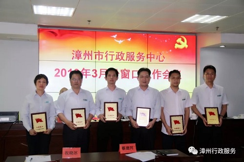 自我院进驻市行政服务中心以来,在中心领导的正确引导下,以“创新四化引领,擦亮四个金牌”为载体,以便民、高效、廉洁、规范为宗旨,努力争创一流的办事效率和服务质量,让企业满意,让群众满意。根据《漳州市行政服务中心月流动红旗窗口及先进个人评比办法》,通过中心各项指标的综合评比,考评得分位居前列,荣获市行政服务中心“红旗窗口”光荣称号,中心窗口负责人康毅清同志代表我院接受奖牌。