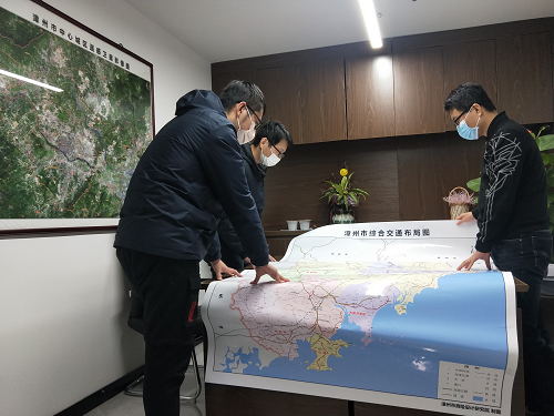 测绘用劲干。2月3日节后上班第一天,紧急组织安排信息中心GIS专业制图人员,中午晚上加班加点,用1天时间加急生产处理漳州市国道1534.7千米、省道529.8千米、县道2086.9千米、乡道4980.8千米、村道6878.9千米、铁路644.4千米、高速1811千米矢量数据,制作成漳州市交通检疫查验站分布图(综合交通布局图)以及漳州市疫情趋势图等,为市交通运输局在全市道路上布设交通检疫站卡口提供可视化的底图底数支撑。2月20日,市交通运输局反馈:“分布图提供了有力数据支撑和决策科学依据,我们使用很方便、效果很好,很满意,很感谢。”