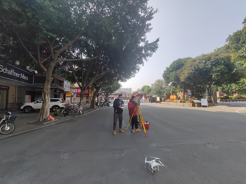 测绘队和航测遥感队联合开展延安北路立面测量
